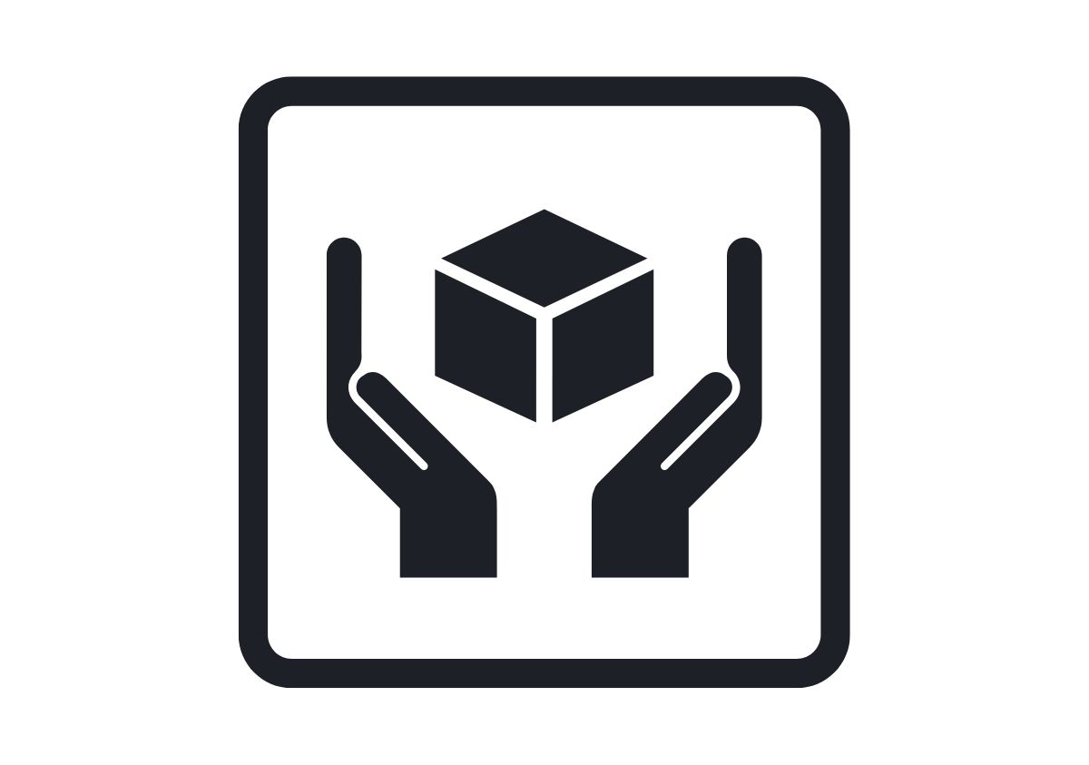 • สัญลักษณ์ Handle with Care (รูปมือ): มีความหมายคล้ายกับสัญลักษณ์ Fragile แต่ใช้กับสินค้าที่ไม่แตกหักง่ายเท่า แต่ก็ยังต้องการการดูแลเป็นพิเศษระหว่างการขนย้าย เพื่อป้องกันรอยขีดข่วนหรือความเสียหายที่อาจเกิดขึ้นจากแรงกระแทก