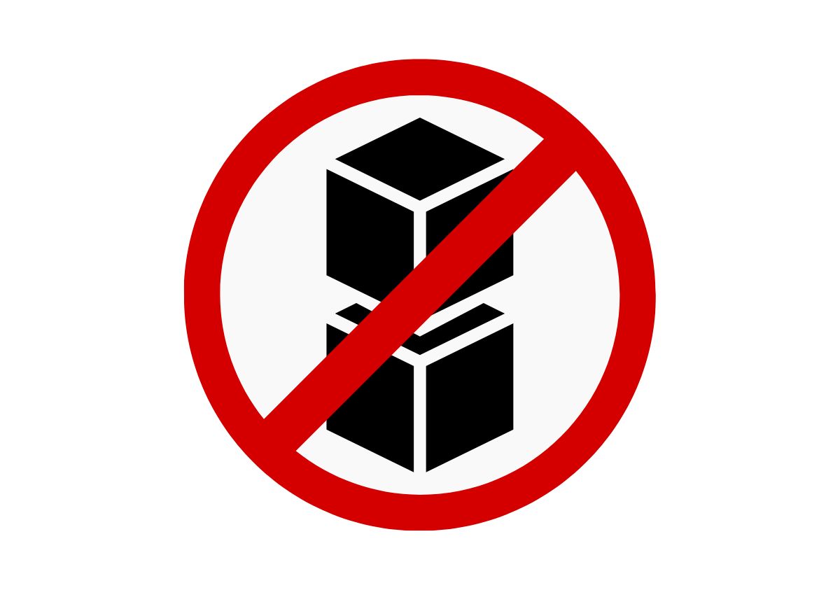 • สัญลักษณ์ Do Not Stack (รูปกล่องสองกล่องมีกากบาท): สัญลักษณ์นี้มีไว้เพื่อแจ้งว่าบรรจุภัณฑ์ดังกล่าวไม่สามารถรับน้ำหนักจากการวางซ้อนทับกันได้ โดยเฉพาะสินค้าที่บอบบางหรือมีโครงสร้างไม่แข็งแรง หากไม่มีสัญลักษณ์นี้ สินค้าอาจเสียหายจากการวางกล่องหลายชั้นทับกัน