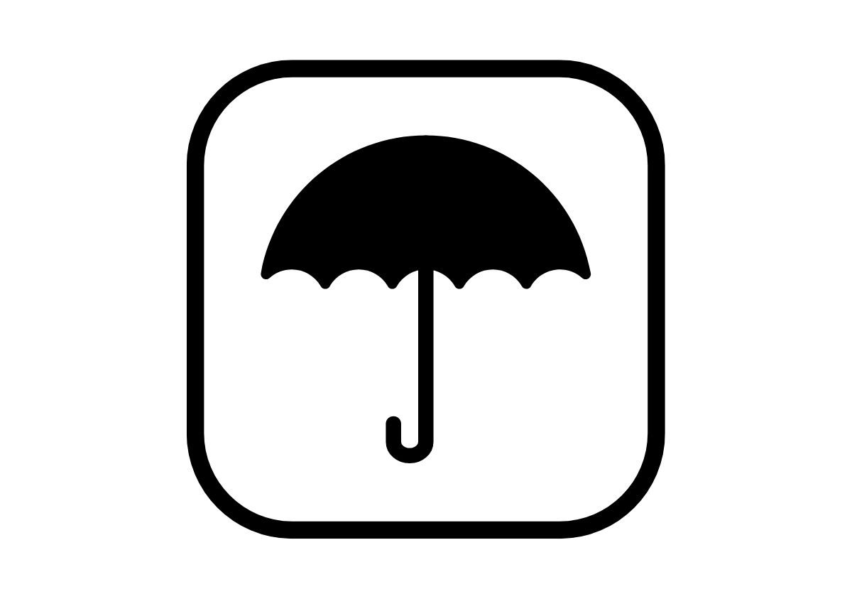 • สัญลักษณ์ Keep Dry (รูปร่ม): แสดงว่าสินค้าภายในมีความอ่อนไหวต่อความชื้นและน้ำ ควรจัดเก็บในที่แห้ง เช่น เอกสาร หรือผลิตภัณฑ์กระดาษ